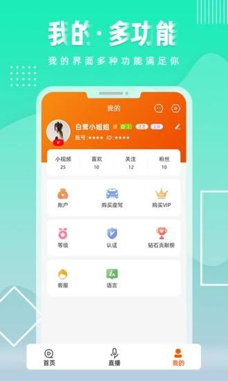 1、超人气直播与你实时互动,进入不同直播室感受不一样的精彩,直播间PK大赛等更多欢乐任你体验。