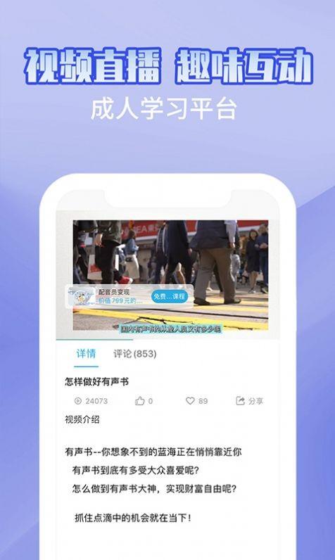 1、趣学配音兼职赚钱,是一款由杭州侯晗教育科技有限公司打造的在线教育学习的APP。
