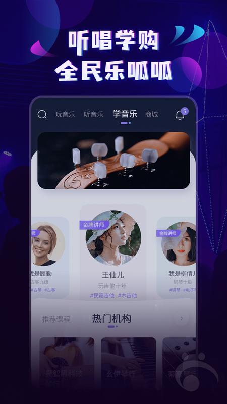 通过听、玩、学、买、秀、比赛一键解锁整个音乐场景,大量比赛和榜单,从引入-孵化-支持-实现场景,打造音乐行业全场景一站式平台,一天实现百万音乐梦,那么一年就可以实现365个音乐梦,感兴趣的小伙伴一定不能错过这款app了,赶紧来下载吧。