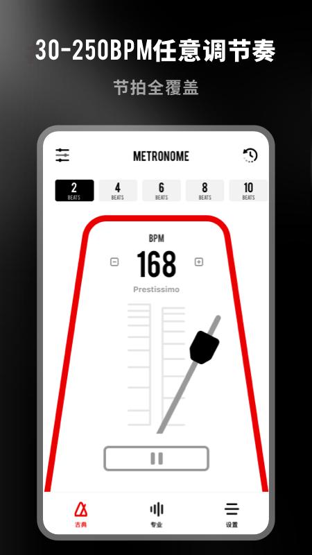 4、模式选择,有节拍模式与节奏模式,你都可以根据自己的需求进行挑选,还支持后台播放。