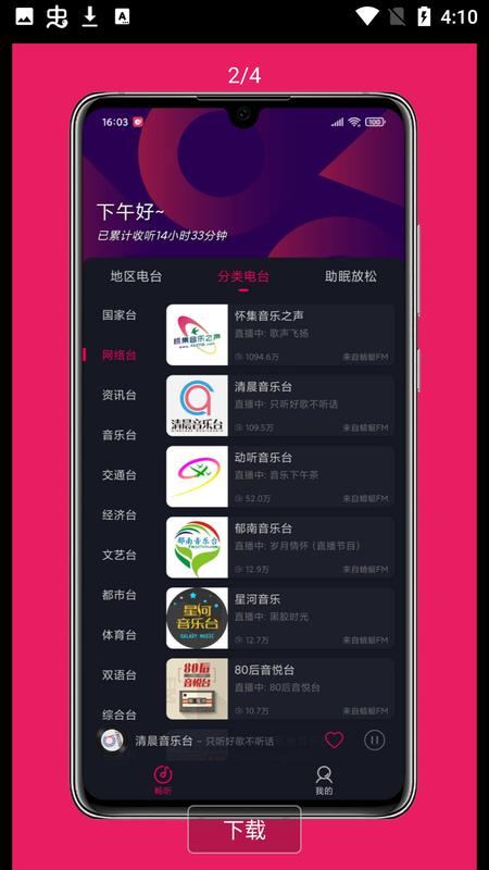 极简、高效的音频效率播放工具,汇聚国内上千个FM电台,让你随时随地,想听就听,