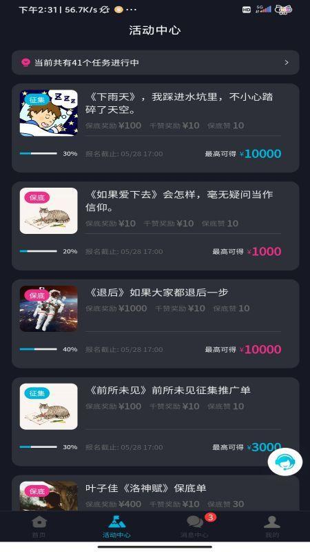 5、活动推荐,设置海量的活动奖励,查看相关要求,结合符合要求进行拍摄。