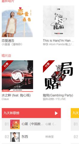 4、200万首高品质海量九天曲库支持,丰富的音乐内容,各类热门榜单,随便听听音乐包,简便的在线音乐搜索,支持在线音乐试听,高品质的MP3下载。