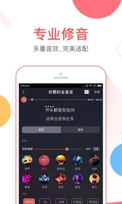 专业音效:手机上也有很多的模式可以选择,虽然不能百分百还原KTV,但是也能让你畅享最高音效