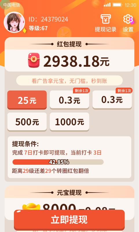 3、一元提现,满足一元之后就能很快的提现,还能很好的查看到账的金额。