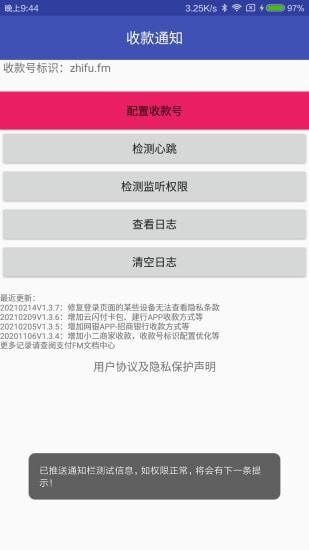 支付FM APP是一款功能十分全面的收款管理服务软件,平台支持配置收款号、检测收款信息、检测权限等功能,包含了大约各种方便快捷的支付渠道,用户可以直接使用该软件来处理自己的收支明细,无需下载各种专业的支付软件,非常方便和安全,许多商店商家会使用收款软件来收钱,再也不用担心自己的账单会不清楚了,有需要的用户赶紧来下载这款app使用吧。