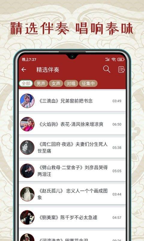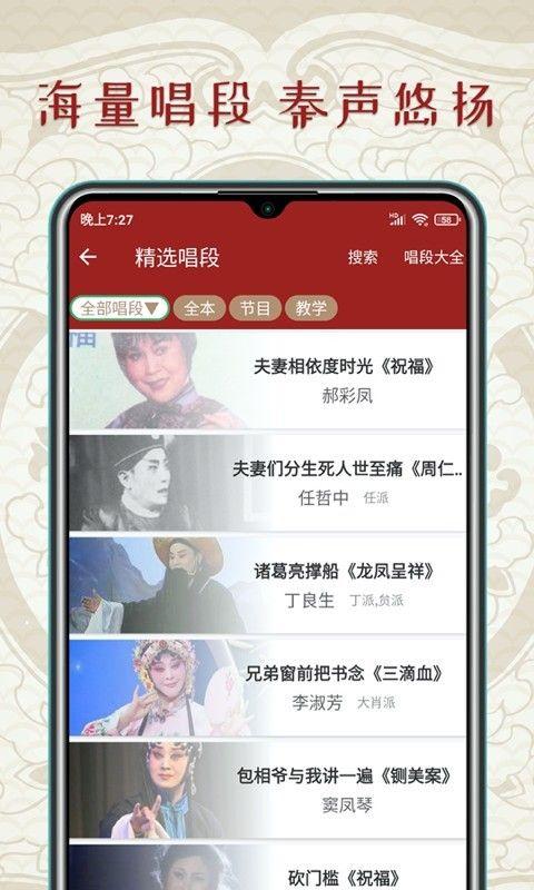 3、内容丰富,美观实用,不仅有精美秦腔艺术唱段,伴奏,美图,还有秦腔流派。