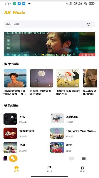 2、海量的曲库及全球音乐排行榜,让你准确的进行搜索;