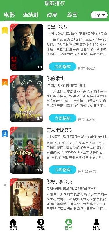 侦探影视是一款很好用的视频播放软件,为您带来超清的影视播放体验,您可以在手机上轻松观看多种影视大片和电视剧,还可以直接看网络电视频道,支持缓存、投屏、倍速、播放记录等功能,喜欢的朋友,千万不要犹豫啦,快去下载软件体验吧。