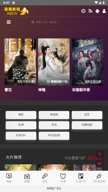 香蕉影视2024是一款非常好用的影视播放软件,为大家带来的是各种各样的影视剧资源,可以在线免费进行观看,每一个影视剧都有相应的资源分类,你想看的电影、电视剧、综艺都可以在这里轻松找到,用户可以在这里观看各种精彩的影视剧,这里有超多精彩的影视剧资源,喜欢看电视剧的朋友千万不要错过,赶紧来软件优点