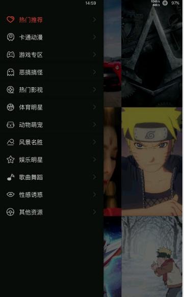 3、精选分类,流行壁纸,游戏壁纸,动漫壁纸,游戏壁纸,汽车壁纸,手机壁纸。