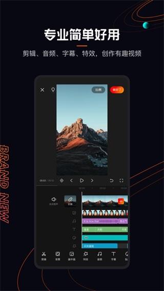 快影是快手公司旗下简单易用的视频拍摄、剪辑和制作工具。快影强大的视频剪辑功能,丰富的音乐库、音效库和新式封面,让你在手机上就能轻轻松松完成视频编辑和视频创意,制作出令人惊艳的趣味视频。在手机上轻松完成各种复杂操作,各种剪辑、编辑功能让你的视频更好看更好听更酷炫!户都可以自行摄影、剪切,还可以手动换BGM哟。