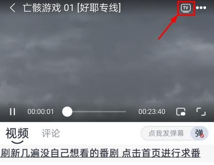 2、播放界面的右上角就能设置投屏,注意手机与投屏设备要连接同一个WiFi。