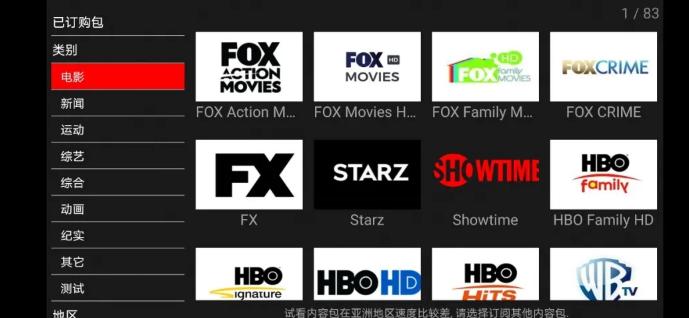 2、除主流CCTV、卫视外,还支持台湾、港澳、马来、新加坡、日本、韩国、泰国、北美、巴西等。