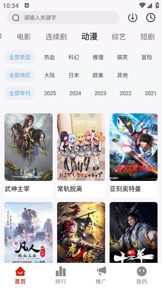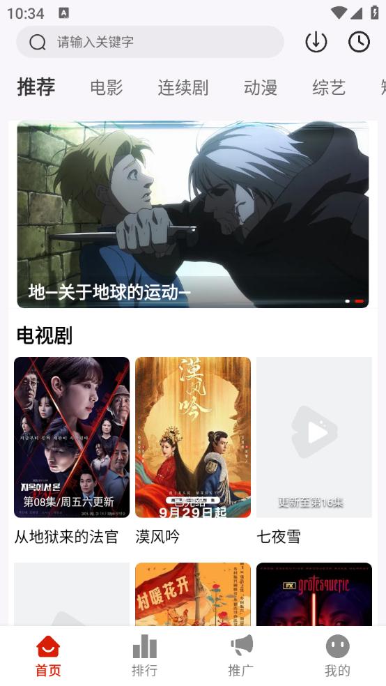 2、在首页APP为大家提供了影视分类,推荐页、电视剧、电影以及动漫等。