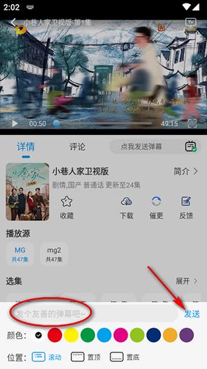 4、再回到发弹幕处,输入内容,颜色设置和位置选择即可。