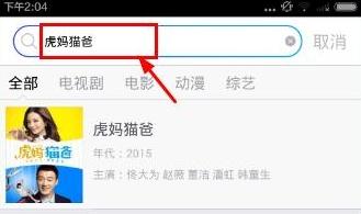2、在搜索栏输入您想看的视频,例如虎妈猫爸,就会有视频资源,点击进去