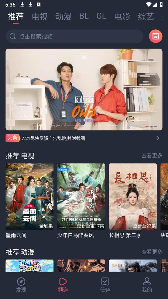 2、用户大开软件首页后,就可以看到丰富的内容,漫作、电影、综艺都有。