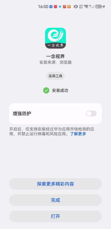 5、最后出现绿色勾号,表示“安装完成”,点击打开,就可以体验了。