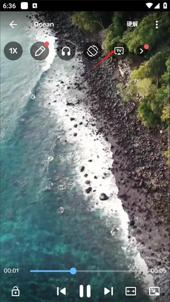3、在进入到视频之后点击一下屏幕,上方就会出现一系列的功能,这里有一整个投屏的选项,点击这个选项开始投屏;