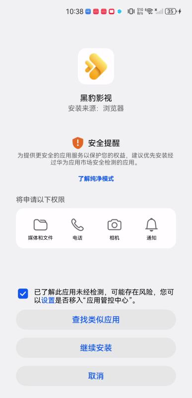 3、接下来点击勾选“已了解此应用未经检测……”,点击“继续安装”。(还可以点击了解纯净模式)