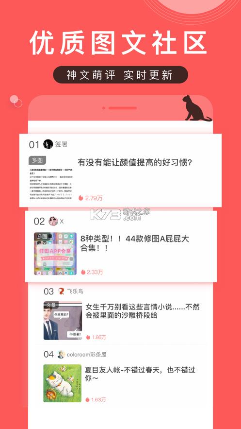 堆糖壁纸高清下载版是一款好玩的娱乐主题社区软件,为用户提供海量有趣的高壁纸内容。这里提供各种精美壁纸,有大量高清图像壁纸供用户收藏分享。感兴趣的朋友,现在就来下载吧!一款非常有趣的美图社区app,聚集了有趣的灵魂,收集了海量的高清图片内容,还涵盖了手工艺品、插画、街拍、美食菜谱、配对指南等内容供你分享。有兴趣的不要错过!对糖app移动客户端是一款专门为用户开发的免费移动美妆分享社区软件。该应用程序包含许多不同类型的高清图像,可以用作您的手机壁纸或QQ头像。丰富的软件资源,高清无水印的图像。喜欢就来试试吧!