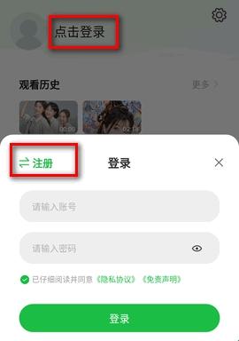第一步:打开app,点击【我的】,点击【点击登录】,再点击【注册】。