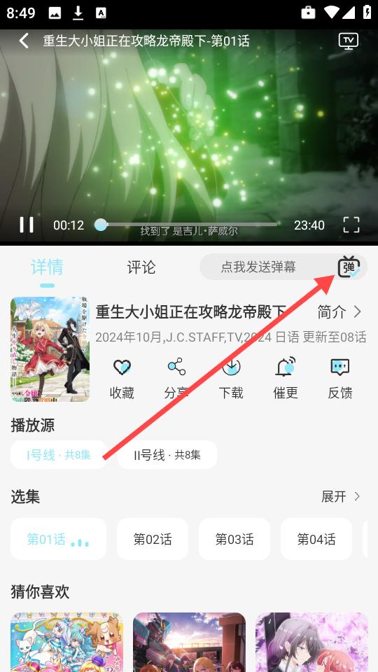 2、任意选择一部你喜欢的动漫播放,这里以“重生大小姐正在攻略龙帝殿下”为例。