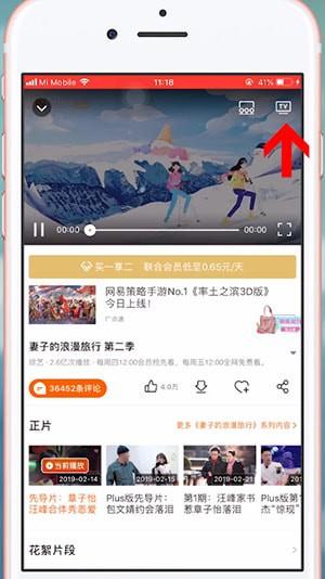 2、如果跳转到第三方平台,同样在正片的右上角点击电视机图标即可投屏。
