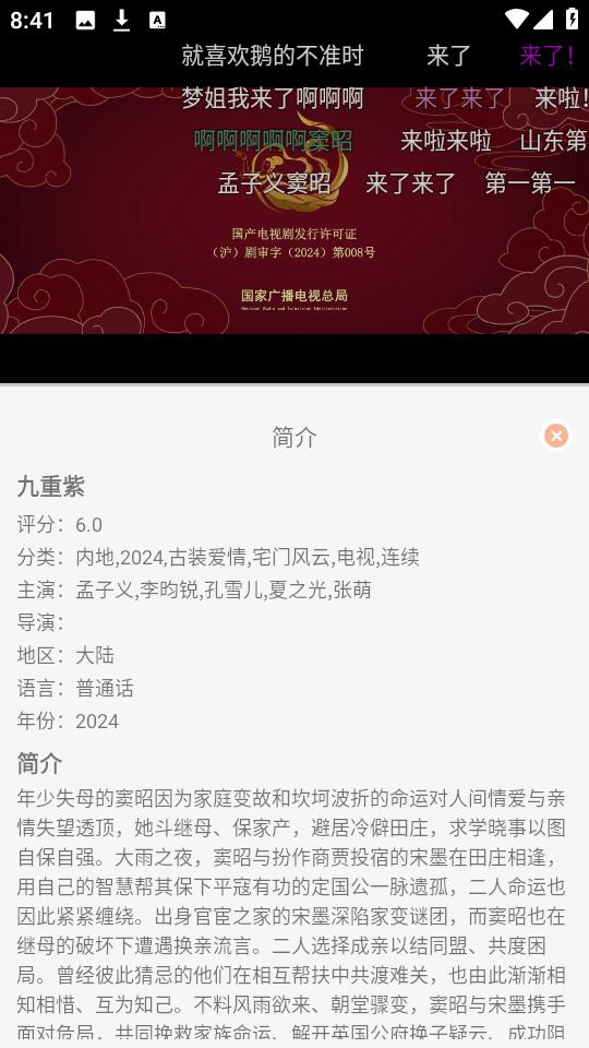 4、任意选择一部你喜欢的影视播放,这里以“九重紫”为例。