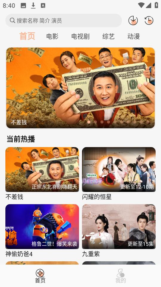 2、首页汇集了当前热播的电影,电视剧,综艺,动漫等内容。