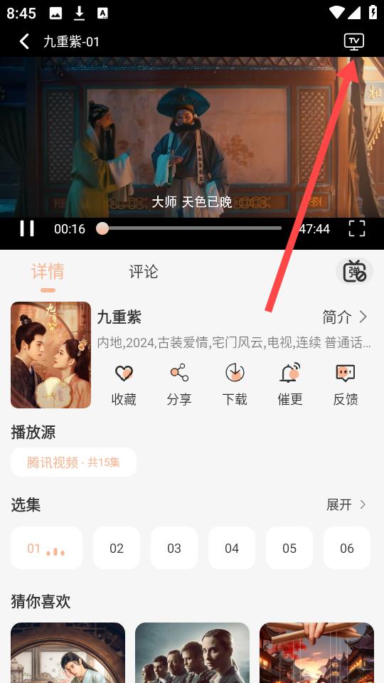 2、接着在播放界面,右上角点击“tv”标志,如图所示。