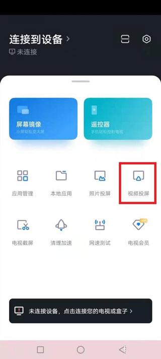 1、手机打开小米电视助手软件,点击选择视频投屏项目。
