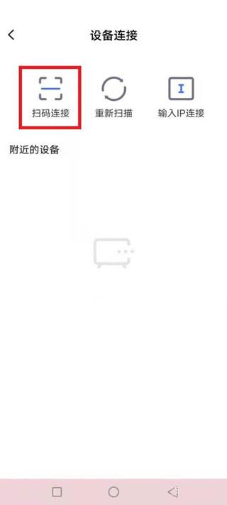 4、当然我们也可以在设备连接页面中,我们可选择扫码连接或输出电视的ip进行连接。