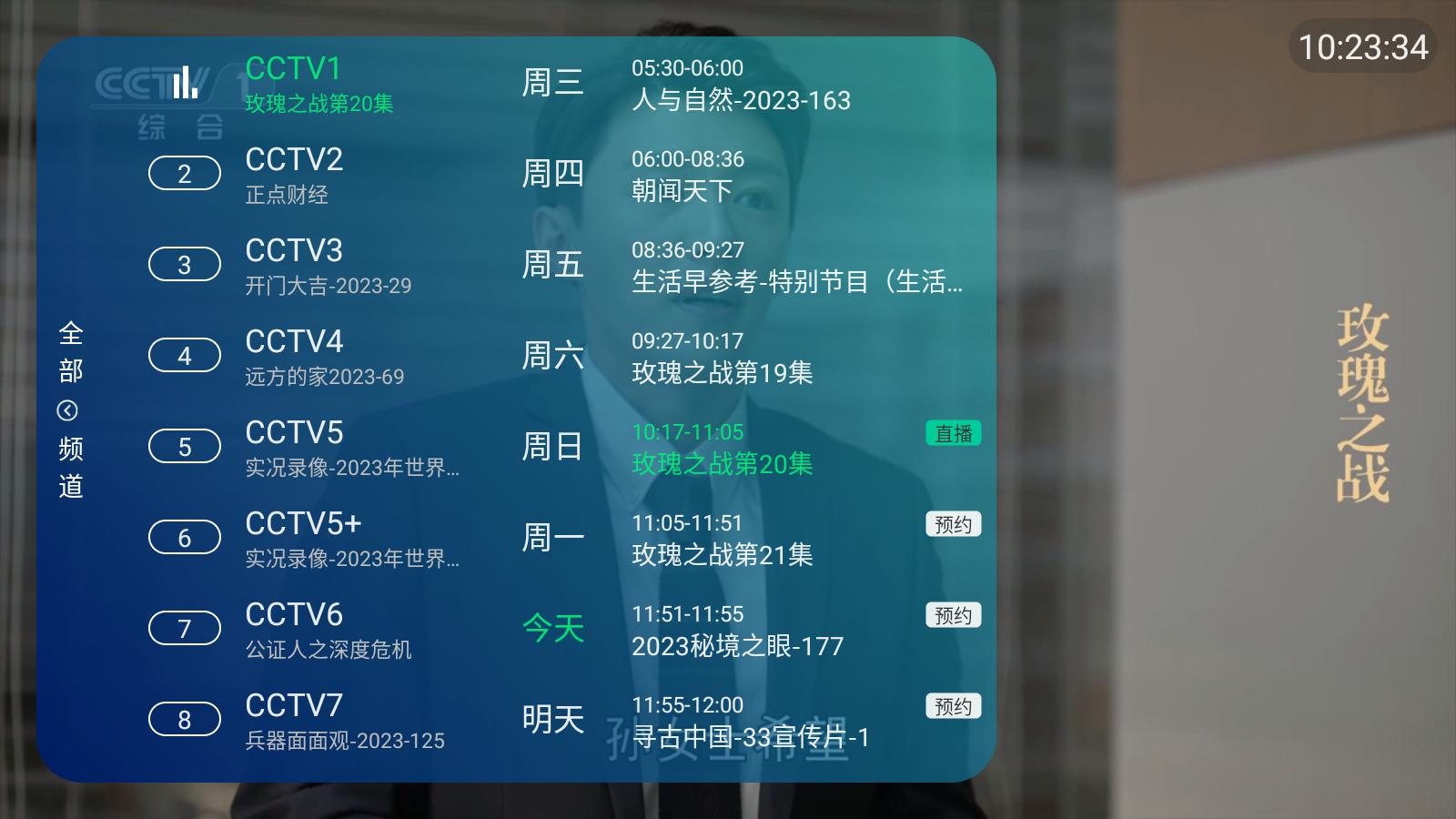 3、点击左侧的节目单,以央视台CCTV1为例