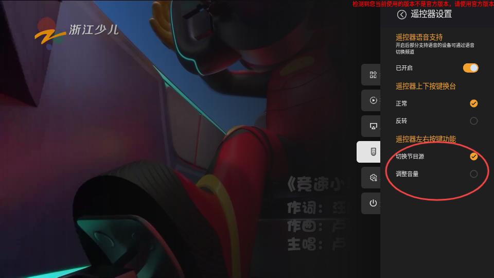3、接着选着“遥控器设置”,还可以自定义切换节目源,调整音量等功能。