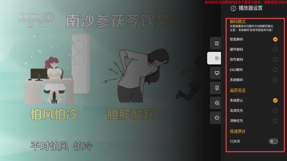 2、任意点击播放界面,在右边栏目功能里面,可以自定义设置播放器的相关参数。