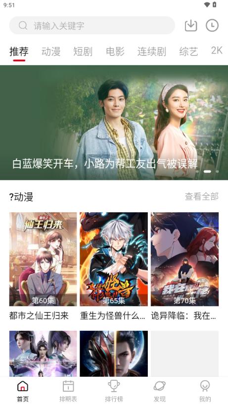 2、首页包含了动漫,短剧,电影,连续剧,综艺等内容。