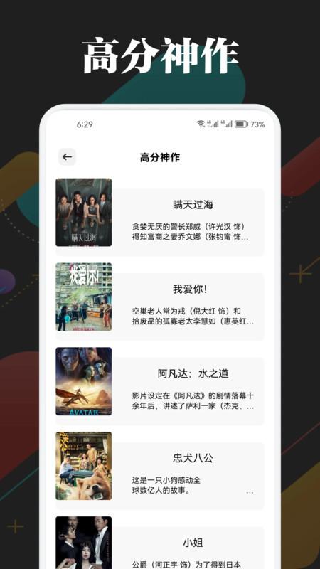 无论是热播剧集还是经典影视作品,这款软件都能满足用户的追剧需求,让观影体验更加便捷,用户可以通过一站式查询了解到每部剧集要表达的内容和呈现的故事,为观影增添更多乐趣。随时随地查看最新的剧集,不再为选剧而烦恼,让用户能够第一时间跟进影视世界的动态。更多榜单内容呈现,帮助用户发现口碑好剧,找到自己感兴趣的影视作品,节省了寻找好剧的时间。
