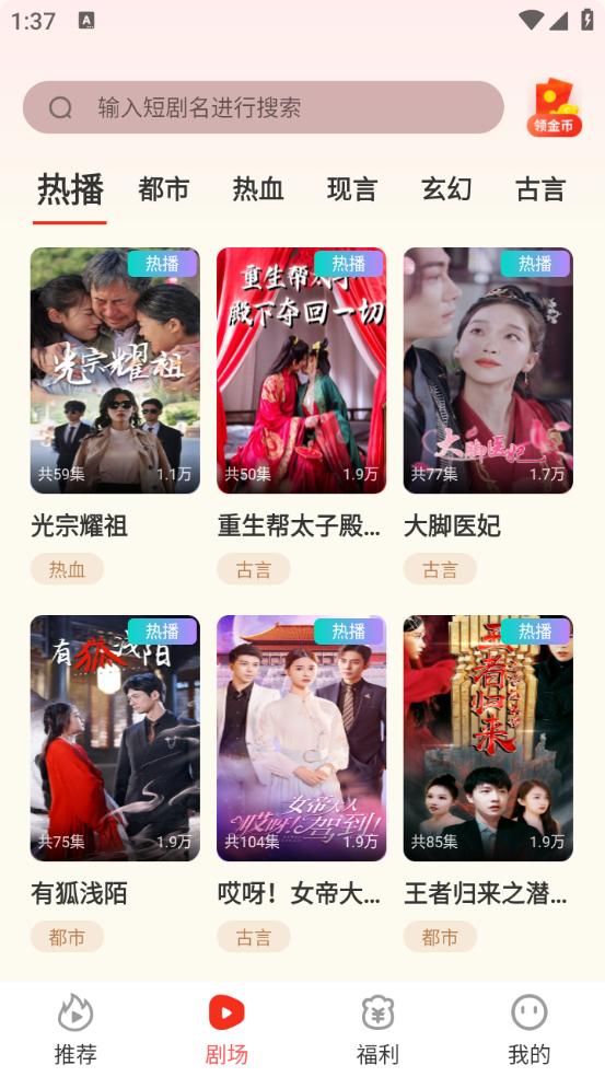 2、剧场的主页面为各位带来很多的短剧类型。