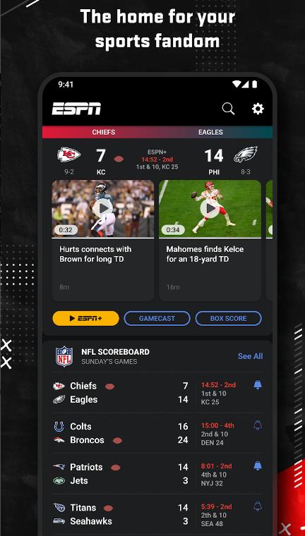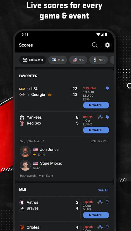 4、ESPN体育直播包括丰富的赛事信息,球队数据和球员信息,让你可以全面了解你喜欢的运动。
