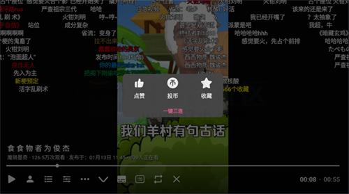 4、保留了原汁原味的弹幕功能(可以开关),遇到喜欢的UP主视频,还支持关注、点赞、投币、收藏。