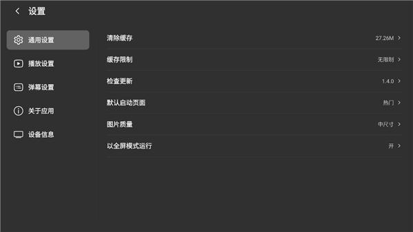 7、最后点击首页左下角齿轮状按钮,玩家可以自定义设置通用设置、播放设置、弹幕设置等等;