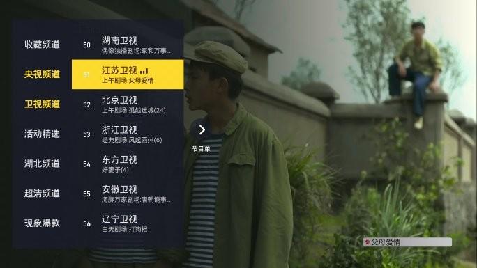 2、菜单包括收藏频道、卫视频道、央视频道、湖北频道、超清频道、欢乐剧场等板块