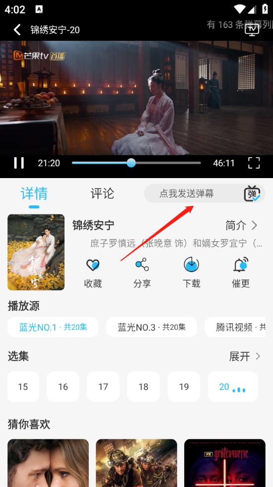 1、想要在网飞猫上发弹幕,非常简单!打开任意一部影视,比如“锦绣安宁”,你就会看到屏幕下方有一个输入框。