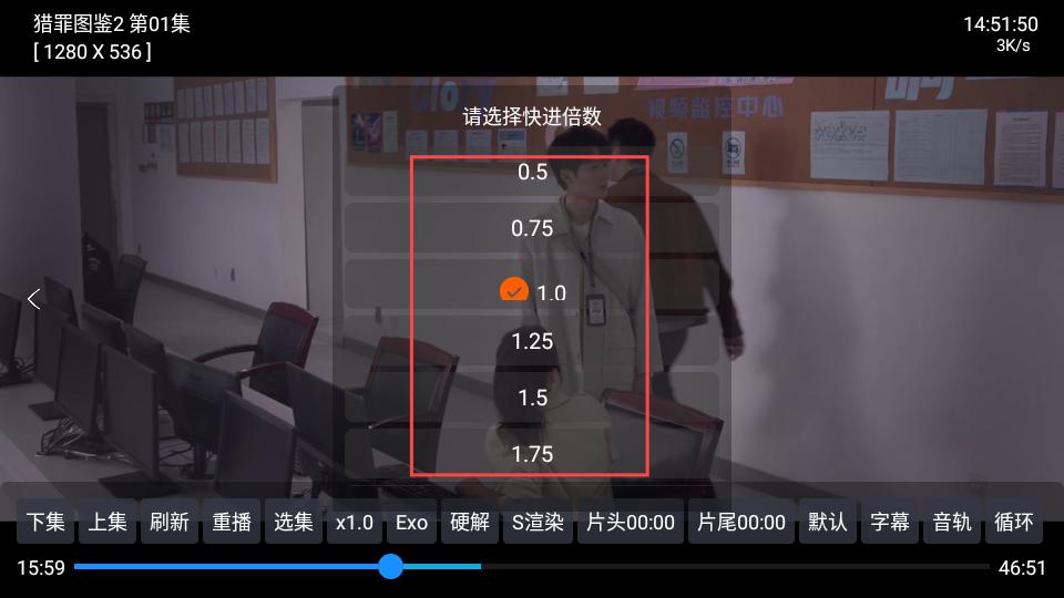 2、接着点击播放界面,选择一个你觉得合适的速度。