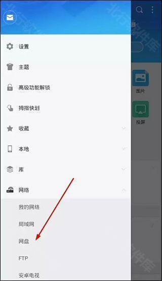1、打开MX播放器,点击左上角的菜单选项,然后选择网络下的网盘选项。