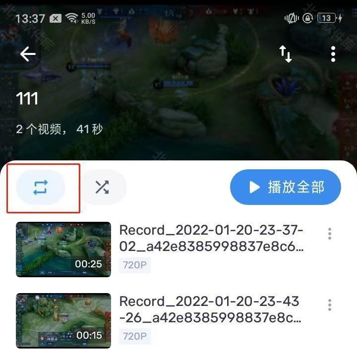 3、点开文件夹,然后点击左侧的循环按钮,列表中的视频就会循环播放。
