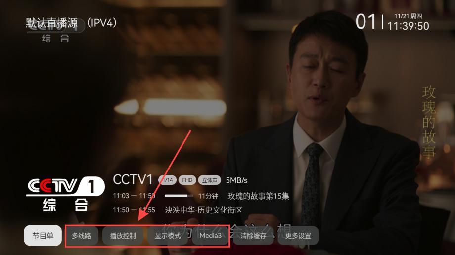 2.下方功能区可以选择线路,快进快退,调整屏幕大小,以及调整播放器等等