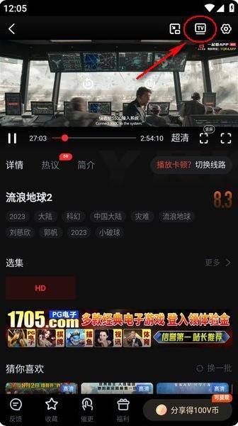 然后打开要观看的视频,右上角有个“TV”按钮,点击一下;